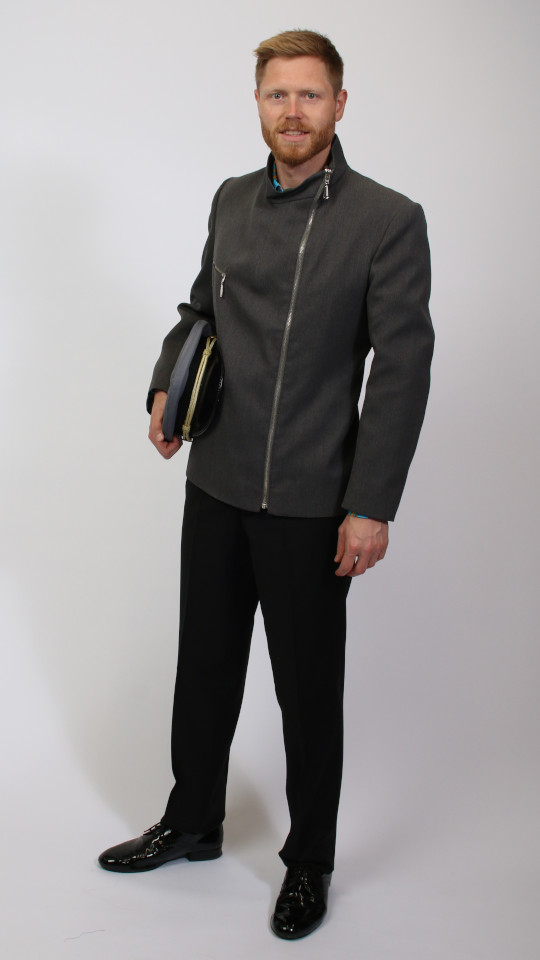 60er Jahre – Chauffeur – Herren – Grau, bestehend aus einer Jacke, einer Hose und einem Hut.